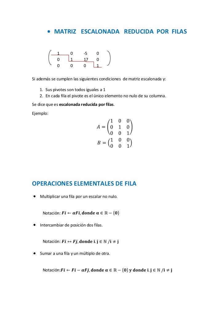 1 Todos los pivotes son 1. 23310-4 1xy2 205 2 213 2n sinphi ou. Ela não apenas reduz uma determinada matriz à forma escalonada reduzida por linhas como também mostra mostra a solução em termos de operações elementares das linhas aplicada à matriz.